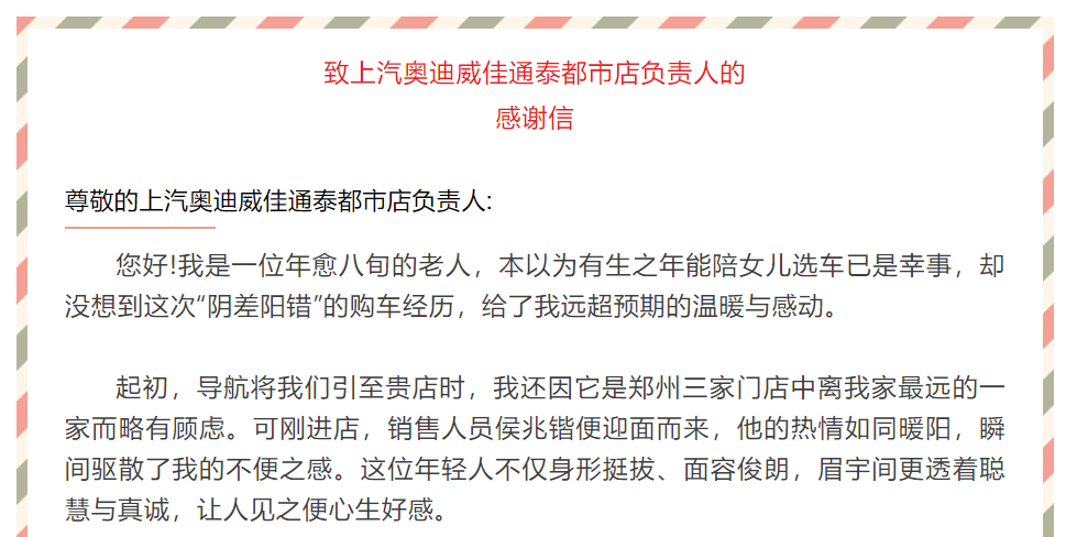 【威佳溫度】字字暖心 句句真情——一封來自年逾八旬老人的感謝信